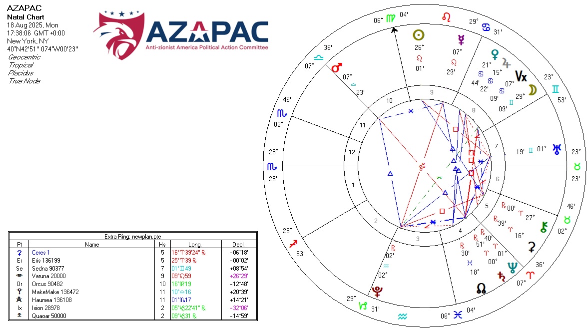 This new organization is called the Anti-Zionist America Political Action Committee – AZA-PAC for short. It was registered online on 18 August this year (chart). Its founder is Dr. Michael Rectenwald. The aim is to counter the political influence of the Israel lobby in the United States and eventually to end all PACs. See the video with Dialogue Works below. Rectenwald says this will take some years, as in the remainder of this decade to accomplish. But he states that if one million Americans were to donate $50 to the campaigns of candidates opposing pro-Israel incumbents in key states the movement would make a difference. He goes on to say the aim is not to destroy Israel, but to bring an end to Zionist influence in the United States and to register organizations like AIPAC as foreign agents in the US. AZA-PAC can expect a hard fight, as we might expect. But if the registration chart is any indication, AZA-PAC stands a fighting chance of succeeding. Americans and resident aliens, if you want to see our politicians put America first and end Zionism as a viable entity in the US and abroad, please give generously to the cause. One of the reasons, also, why AZA-PAC was founded was the now overt Zionist orientation of the Trump administration.